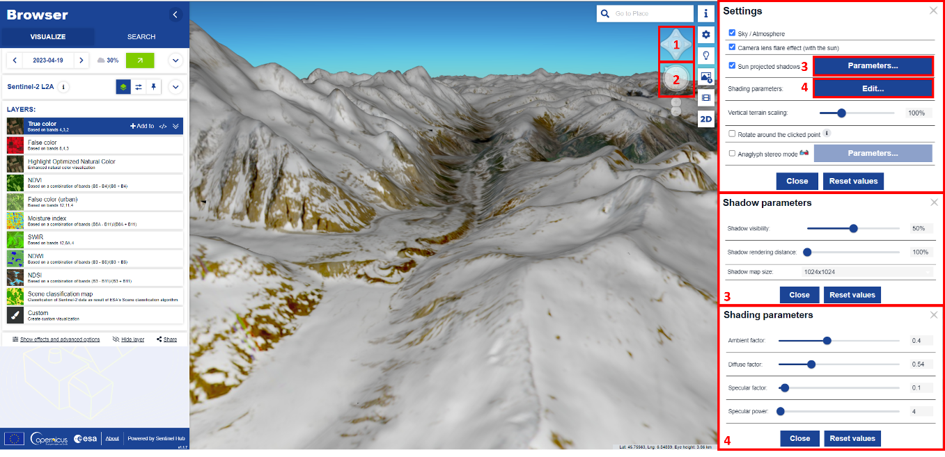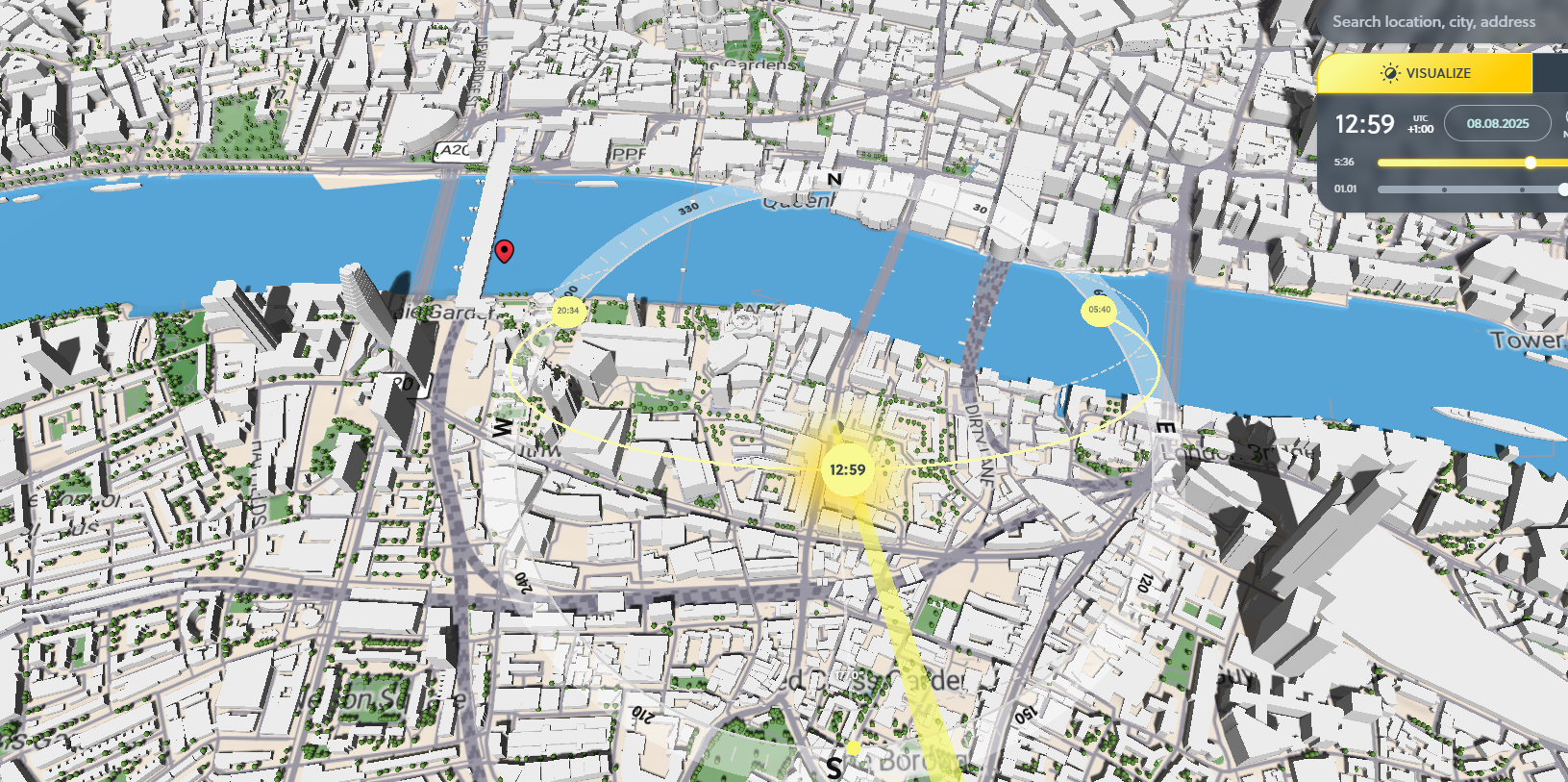 Дозволяє переглядати тіні, що відкидають будівлі в будь-якій точці світу, та імітує, куди ці тіні падатимуть у будь-який час. Корисно для визначення місця розташування фотографій та відео в густонаселених міських районах.