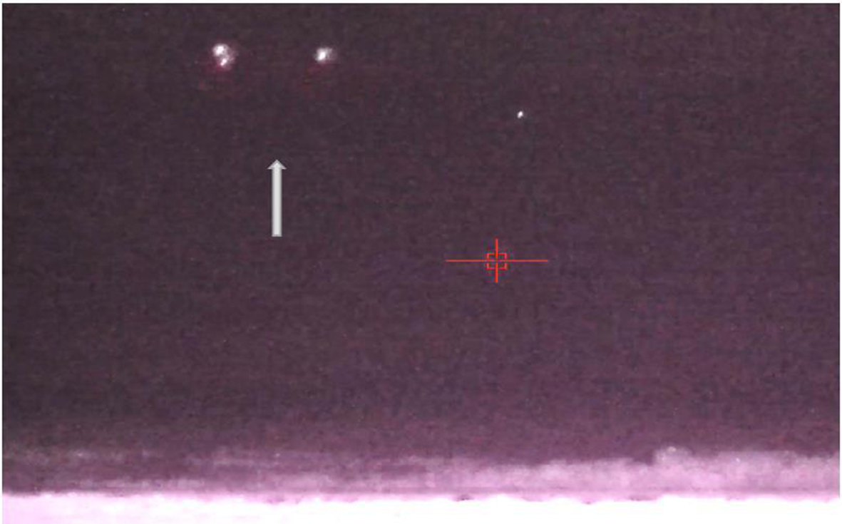 Рис.7 Четыре НЛО над океаном (указаны стрелкой). Инфракрасная съемка